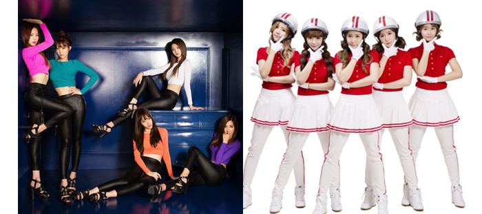 왼쪽부터 `EXID-위아래` 와 `크레용팝-빠빠빠` 활동 당시 이미지